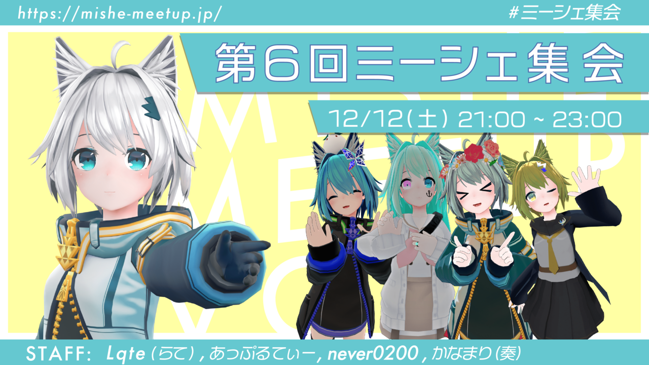 - ミーシェアバターをお持ちでない方は、Vket2にてサンプルミーシェを着用の上ご参加お願いします。